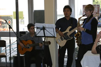 Für eine tolle Stimmung im Huchenfelder Rathaus … sorgten die Musiker Manuel aus Peru (Gitarre), Risky aus Indonesien (Gitarre und Bassgitarre) sowie Rebekka aus Böblingen (Saxophon). Das musikalische Rahmenprogramm war das Highlight des Herbstkaffees am Sonntag, dem 18. November. Veranstaltet wurde der Nachmittag durch das Huchenfelder Leseforum e.V., welcher wieder zur gemütlichen Kaffeerunde einlud. Im kleinen Flohmarkt konnten die Besucher sich Bücher für trübe Herbsttage oder Lektüre rund um die Weihnachtszeit aussuchen. Auch in der Bücherei konnte man sich mit neuem Lesestoff eindecken. Die Kinder verzierten mit Zuckerguß und bunten Perlen mit viel Geschick Lebkuchen-Rohlinge in allen Variationen. Manche konnten es kaum erwarten, bis der Zuckerguß trocken war. Den Helferinnen Michaela Regelmann, Brigitte Lindenmann und Evi Beller-Könne recht herzlichen Dank für die Betreuung und Organisation. Aus Krankheitsgründen musste die 2. Vorsitzende Andrea Kelnhofer leider absagen. Wir wünschen ihr auf diesem Wege baldige Genesung. Vielen Dank auch den fleißigen Bäckerinnen, die mit leckeren Kuchen und Torten eine große Auswahl am Kuchenbuffet schufen. Da konnte niemand wiederstehen, noch ein zweites Stück zu nehmen. Mit Kaffee-Baileys und Kaffee-Kirsch wurde die süße Pracht abgerundet. Wir bedanken uns bei allen Gästen, die uns bei dieser Veranstaltung