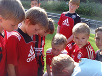 Freitag, 12. Juli: DFB-Fußballabzeichen für die Lesekicker Sportplatz - halb 6: Die Lesekicker sowie einige Jungs der D- und E-Jugend des SVH konnten das DFB-Fußball-Abzeichen erlangen. Passen, Flanken, Dribbeln, Torschuss, Köpfen – im Fußball treffen viele unterschiedliche Fähigkeiten aufeinander. Die Teilnehmer mussten insgesamt 5 Stationen eines Parcours durchlaufen und erhielten für jede Station bis zu 60 Punkte. Bei den Kids sieht das ziemlich spielerisch und einfach aus, ist es aber überhaupt nicht. Die Fußballer freuten sich am Ende alle über eine Urkunde und das Sportabzeichen in Gold, Silber und Bronze. Im Anschluss grillten wir gemeinsam mit den Eltern und Geschwistern und sahen uns danach noch einen Film zum Thema Fußball an. Gegen Mitternacht gingen dann alle müde nach Hause.