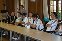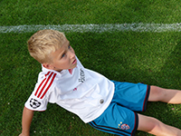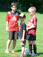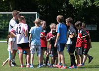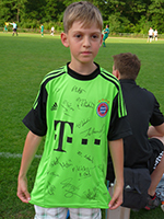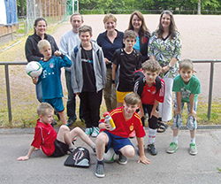 Donnerstag, 20. Juni: Bereits am 14. Juni trafen sich die Huchenfelder Lesekicker zur Vorbereitung auf die nächste Veranstaltung und schauten sich gemeinsam den Film "Die Stille vor dem Schuss" an. Grund dafür ist der Besuch bei der deutschen Fußball-Nationalmannschaft der Gehörlosen am Donnerstag, dem 20. Juni. Claudia Schnabel hatte den Kontakt zu Bundestrainer Frank Zürn hergestellt und die Lesekicker in einem Nachmittag inhaltlich auf den Besuch vorbereitet. Am Donnerstagnachmittag ging es um 14 Uhr los. Alle waren gespannt und ein wenig aufgeregt, was sie auf der Sportschule Schöneck erwartete. Ganz spontan nahm auch unsere Ortsvorsteherin und Schirmherrin des Huchenfelder Projekts, Sabine Gebhart, am Besuch teil. Auf der "Schöneck" angekommen, wurden wir vom Fanbeauftragten des VfB Stuttgart, Peter Reichert, begrüßt. Er nahm sich ausreichend Zeit, alle neugierigen Fragen der Lesekicker zu beantworten. Leon wollte zum Beispiel wissen, ob er auch beim VfB spiele. "Nein, aber ich kenne alle Spieler", bekam er zur Antwort. Als Dank erhielt jedes Kind ein Buch des VfB mit Informationen über die Mannschaft und die Spieler. Bundestrainer Frank Zürn wartete nach einer Trainingsstunde auf dem Rasenplatz auf uns. Die Jungs durften mit ihm eine Trainingseinheit absolvieren. Danach konnten wir an der Teambesprechung teilnehmen und unsere Jungs nutzten ausgiebig die Gelegenheit, viele Fragen an die gehörlosen Spieler zu stellen. Nicht ganz einfach, denn keiner von uns kann die Gebärdensprache. Frank Zürn übersetzte und alle Fragen konnten zufriedenstellend beantwortet werden. Lukas: Wie wird vom Schiedsrichter Abseits gepfiffen? Im Anschluss fuhren wir zur Universität nach Karlsruhe, wo noch ein Testspiel der Gehörlosen gegen den Universitätsverein KIT SC mit Hörenden stattfand. Nach einem Gruppenfoto pfiff der Schiedsrichter das Spiel an und hob dabei noch eine karierte Flagge. Somit hatten wir die Antwort darauf, wie sich der Schiedsrichter im Spiel verständlich macht. Die Lesekicker stellten fest, dass das Spiel überhaupt nicht viel anders ablief, als bei ihnen. In der Spielpause sammelten sie Autogramme und ließen die Nationalspieler auf ihren Trikots unterschreiben. Die Spieler hatten sichtlich Freude daran, von Fans belagert zu werden. Leider ist das bei anderen Fußballspielen nicht der Fall. Die Spieler kicken oft in leeren Stadien, müssen zum Teil die Kosten selbst tragen und sogar Urlaub für die Spiele nehmen. Für eine Mannschaft, die bereits mehrere Meistertitel geholt hat, ist das unbegreiflich. Verdienen die hörenden Nationalspieler doch Millionen. Die Mannschaft nimmt dieses Jahr in Sofia/Bulgarien an den Deaflympics (deaf = taub, Olympics = Olympische Spiele) teil. Seit diesem Besuch sind wir vom Huchenfelder Leseforum, dem SV-Huchenfeld sowie die Ortsvorsteherin Fans der deutschen Nationalmannschaft der Gehörlosen geworden und werden den Besuch immer in Erinnerung behalten.